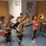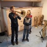 Auch heuer hatten die Kinder der Volksschule wieder die Möglichkeit am Tag der offenen (Musik-) Tür verschiedenste Instrumente einer Blasmusikkapelle auszuprobieren. Angefangen von Bass, Klarinette, Querflöte bis hin zum Schlagzeug war alles dabei und 15 motivierte Kinder nutzten diese Gelegenheit und probierten diese Instrumente aus. Sie hatten sichtlich Freude daran die Instrumente spielen zu dürfen und konnten mit Stolz erkennen, dass es gar nicht so schwer war einen Klang bzw. einen Ton mit den unterschiedlichen Instrumenten zu erzeugen.