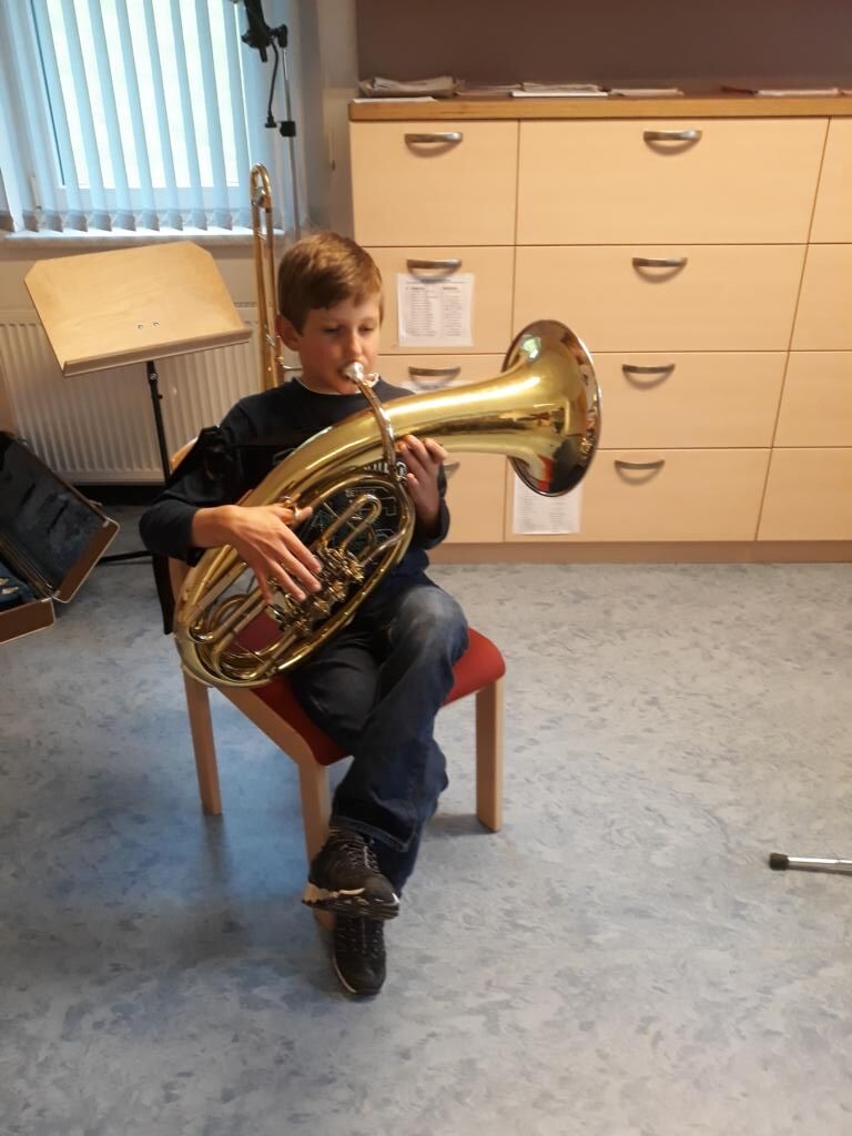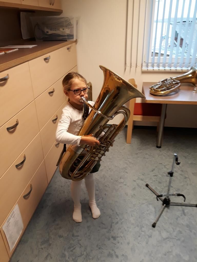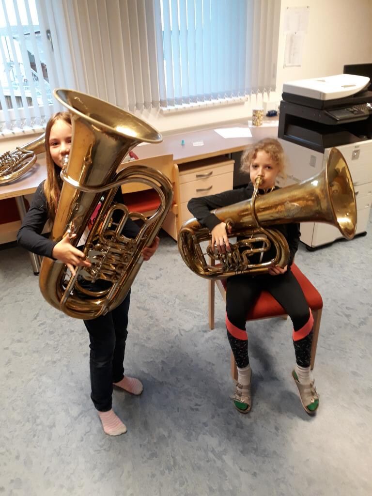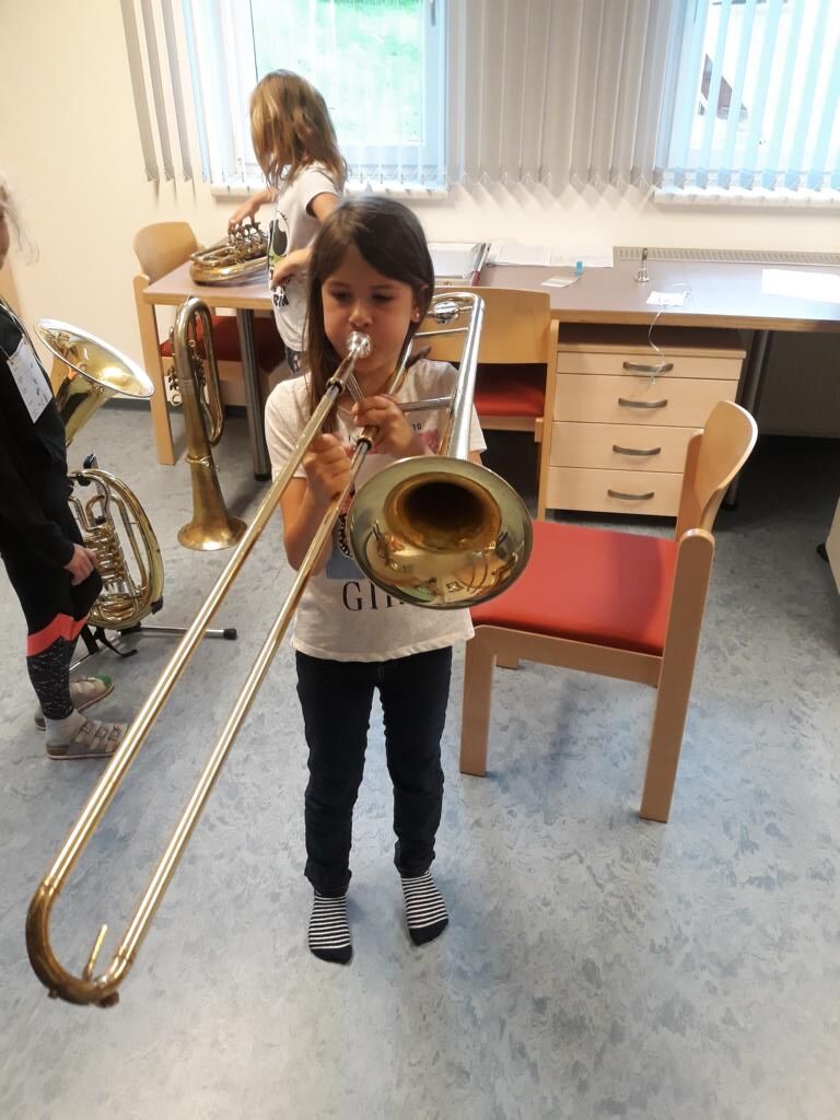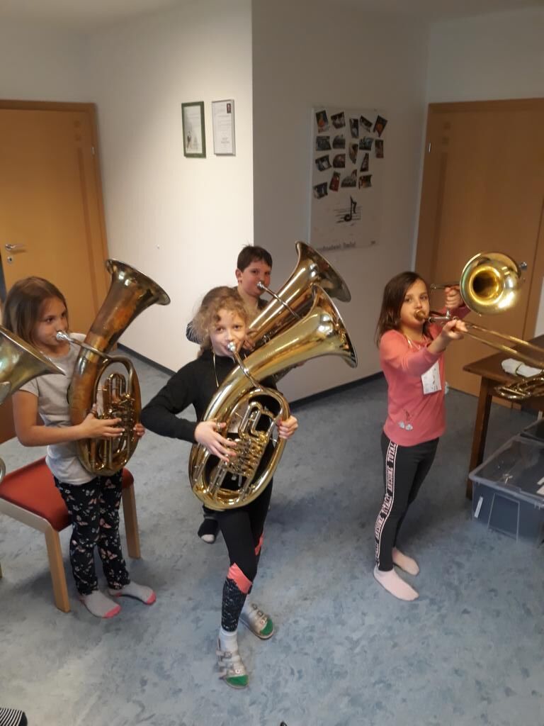 Auch heuer hatten die Kinder der Volksschule wieder die Möglichkeit am Tag der offenen (Musik-) Tür verschiedenste Instrumente einer Blasmusikkapelle auszuprobieren. Angefangen von Bass, Klarinette, Querflöte bis hin zum Schlagzeug war alles dabei und 15 motivierte Kinder nutzten diese Gelegenheit und probierten diese Instrumente aus. Sie hatten sichtlich Freude daran die Instrumente spielen zu dürfen und konnten mit Stolz erkennen, dass es gar nicht so schwer war einen Klang bzw. einen Ton mit den unterschiedlichen Instrumenten zu erzeugen.